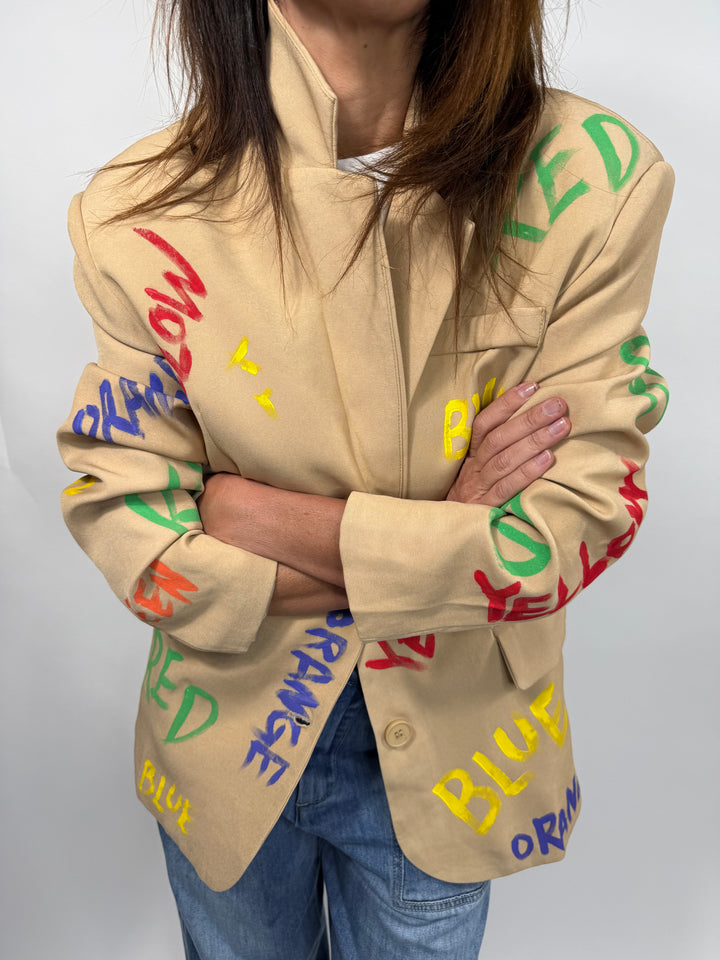 Osez un look affirmé avec le Blazer Taggs Melle D, une pièce forte qui mêle élégance et énergie urbaine. Imprimé de graffitis colorés, il insuffle une touche moderne et décalée à vos tenues. Sa coupe droite et son col tailleur en font un blazer structuré et facile à associer, aussi bien pour dynamiser un look casual que pour twister une tenue plus classique.