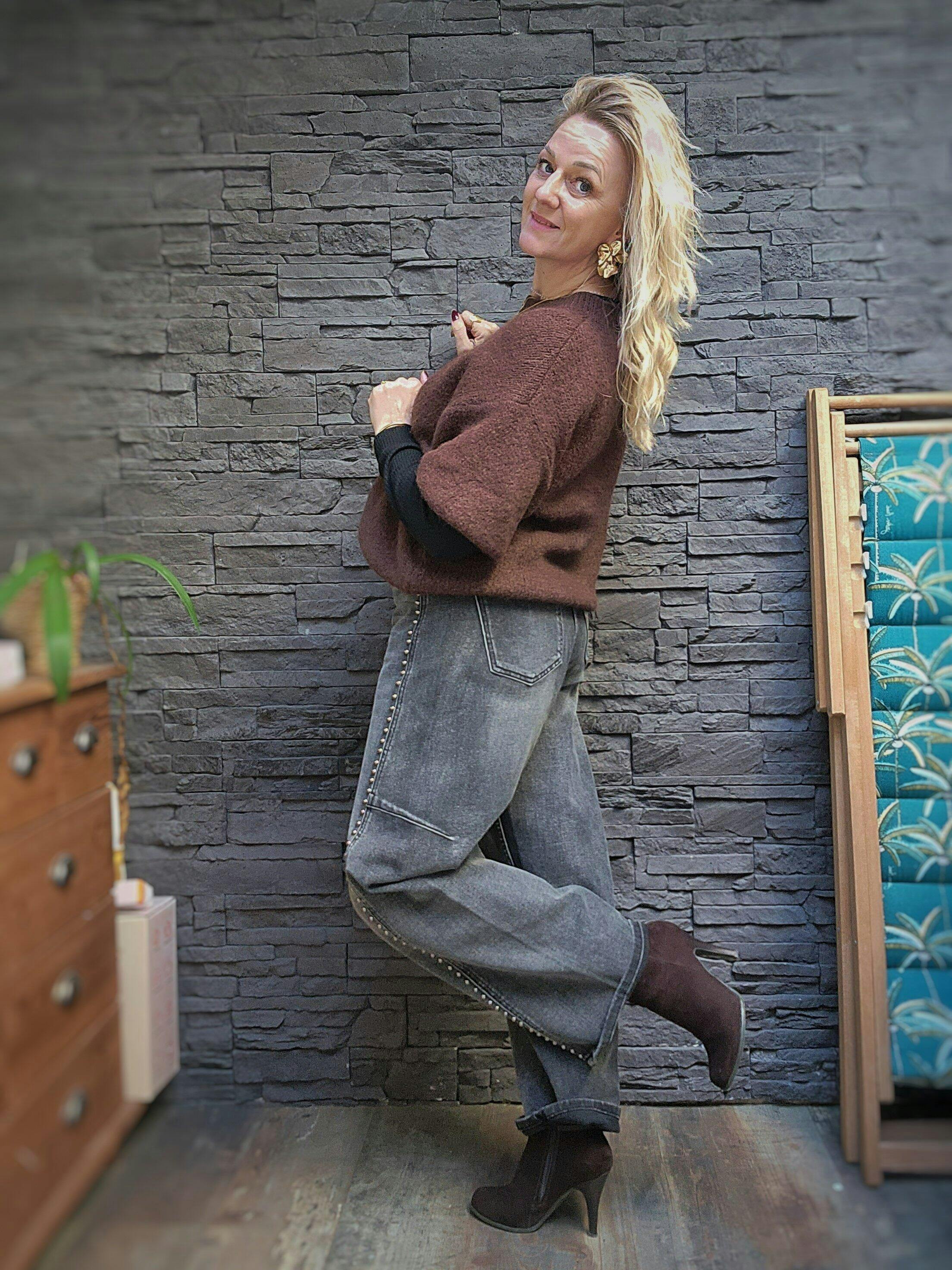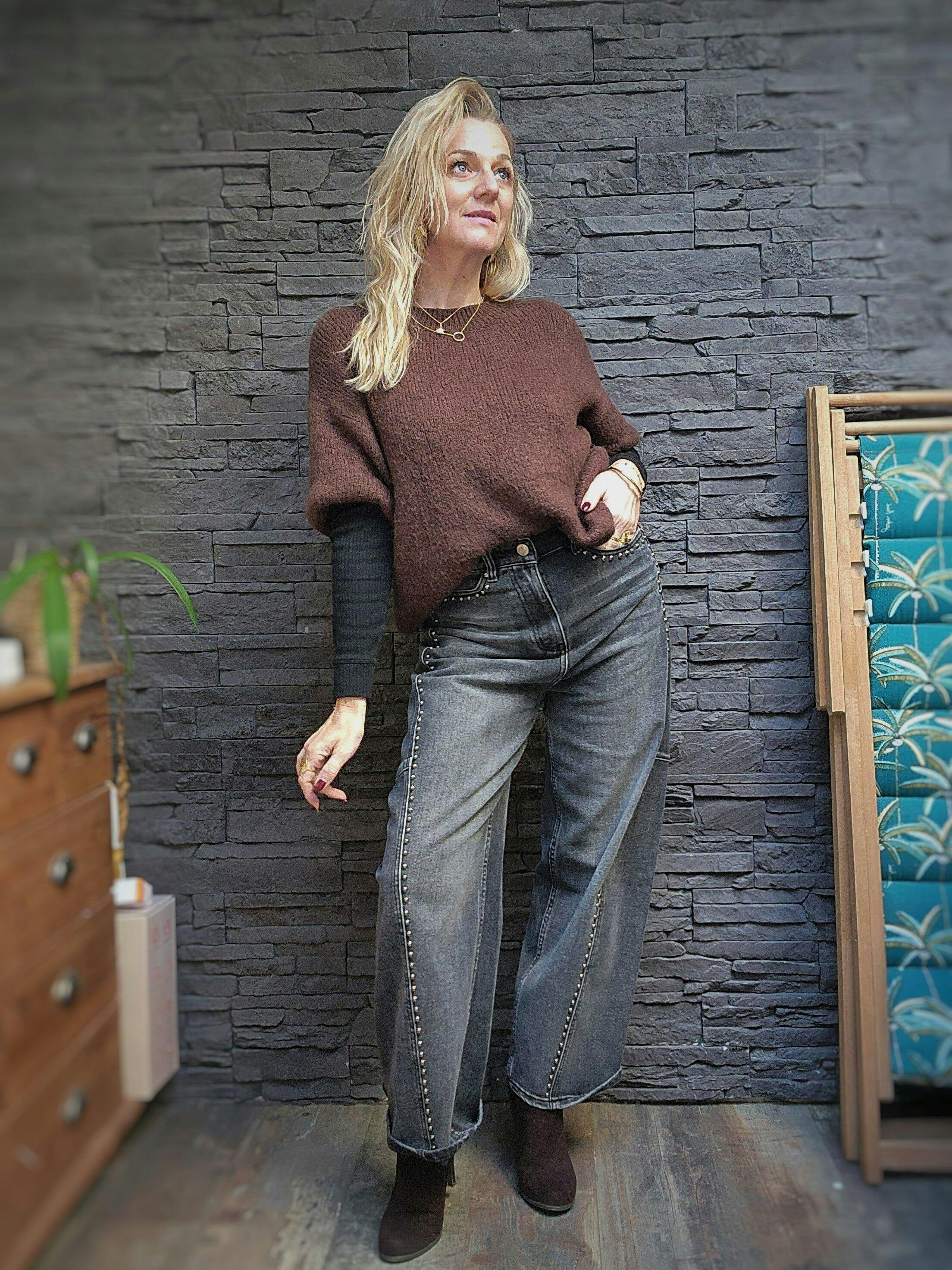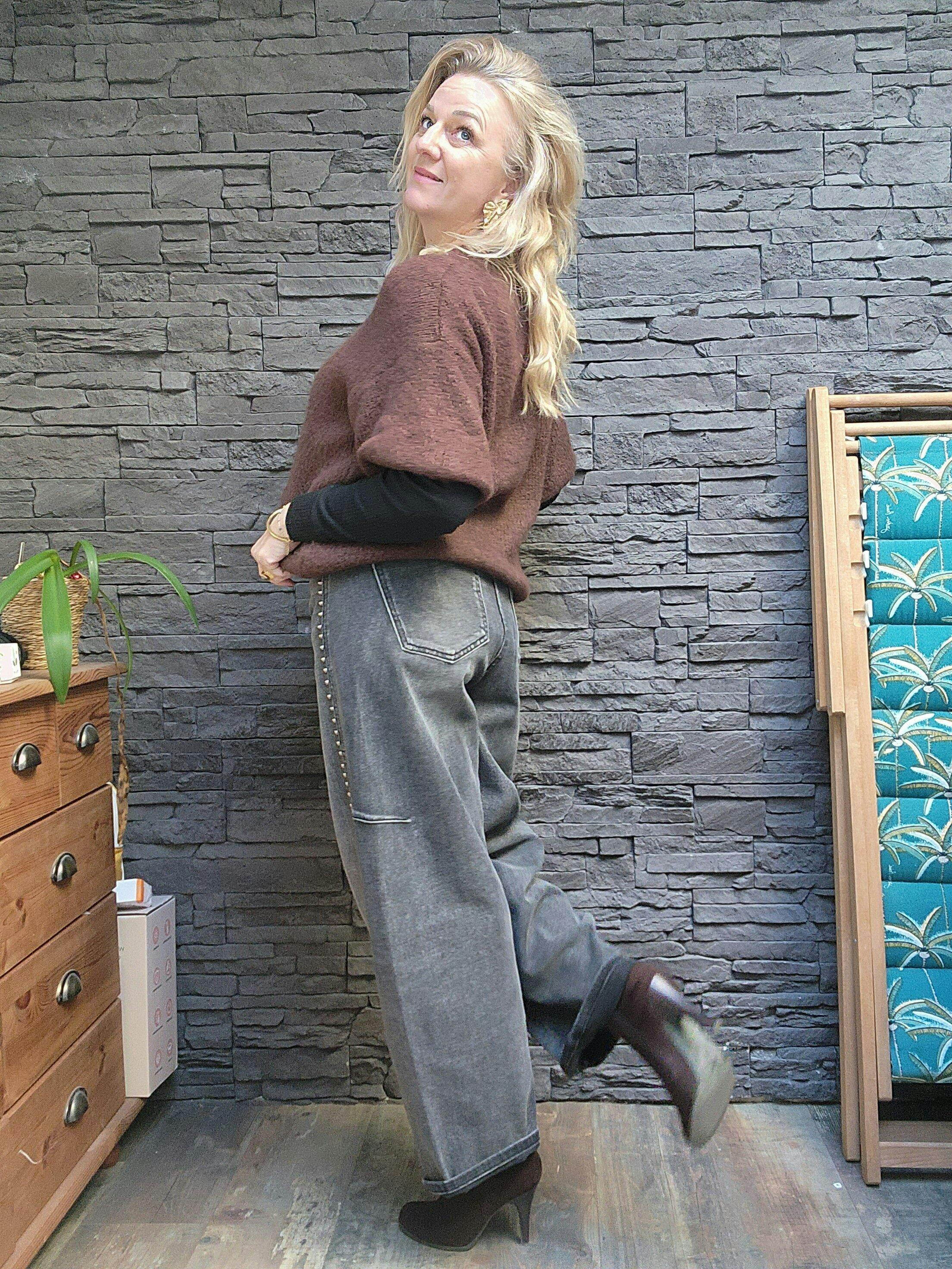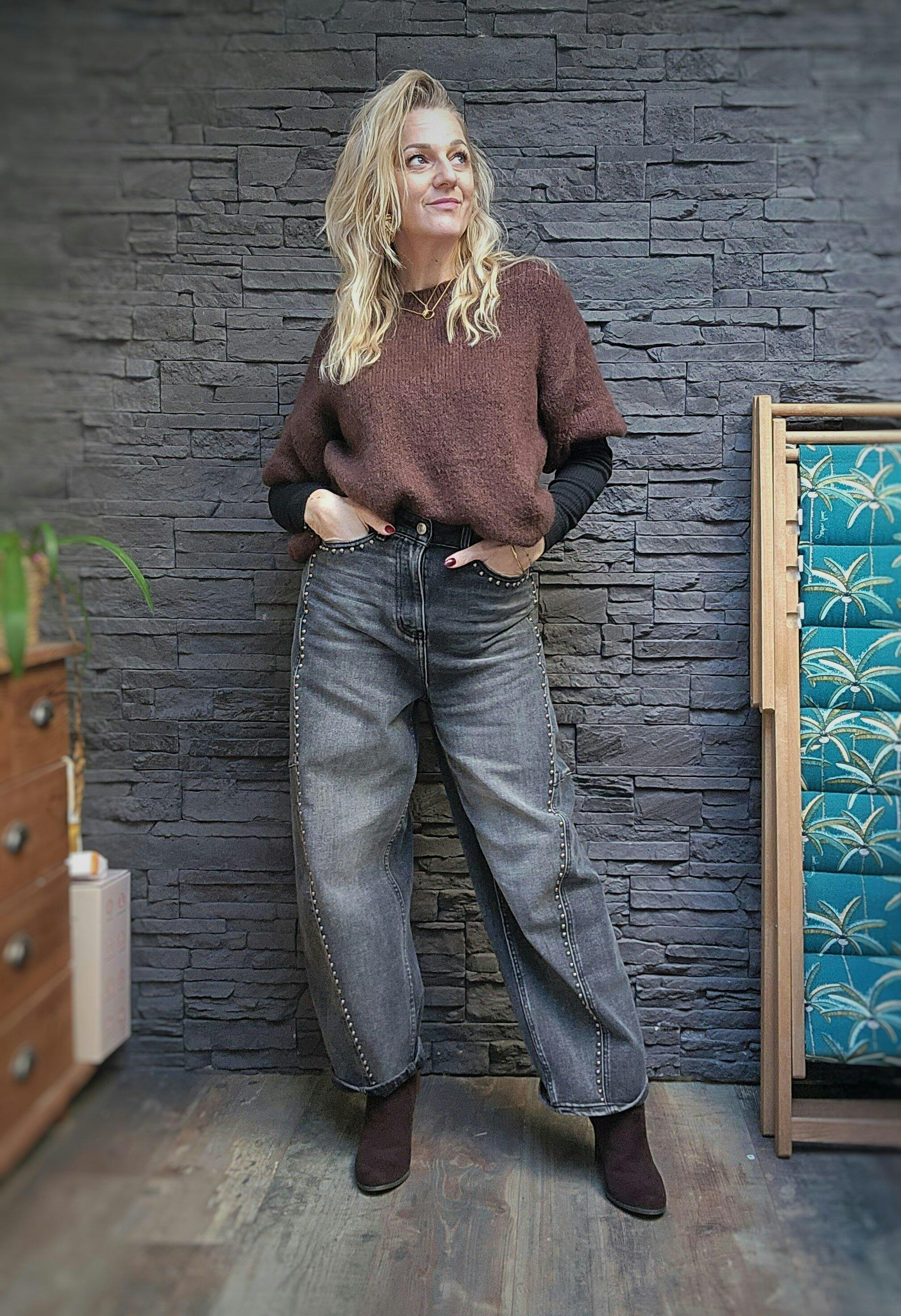 Le jeans Elton Melle D est une pièce tendance avec une coupe "mum" large, idéale pour un look décontracté et confortable. Ce jean se distingue par ses clous arrondis disposés sur toute la longueur de la jambe, ajoutant une touche de style unique et moderne. Véritable coup de 🖤 avec son design unique et son confort inégalé, le jeans Elton est un incontournable pour celles qui cherchent à allier style et décontraction.