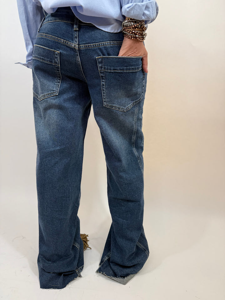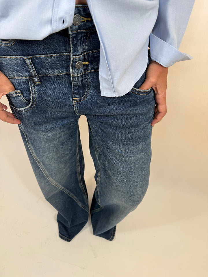 Le Jeans Joy est la pièce incontournable de cette saison ! Avec sa taille haute et sa coupe droite et large, il offre un confort optimal tout en étant ultra tendance. Son effet trompe-l'œil de double ceinture et ses surpiqûres tout au long de la jambe apportent une touche mode indéniable. La ceinture dispose d’une poche briquet pour un look unique et original.
