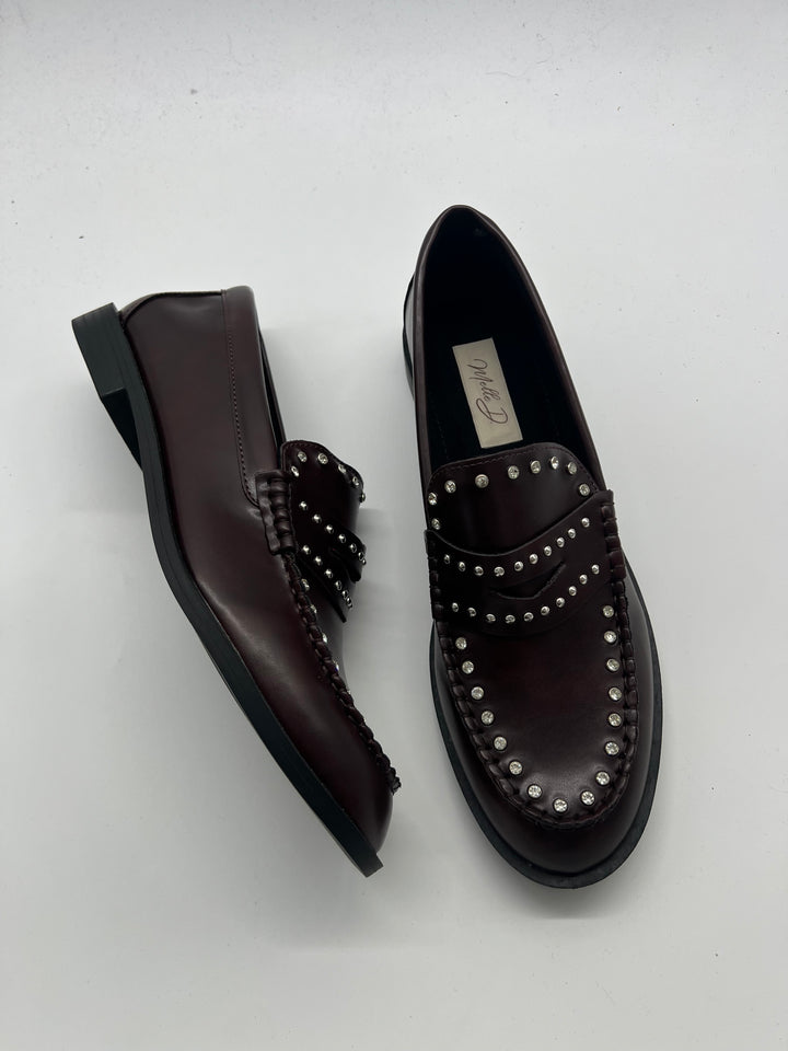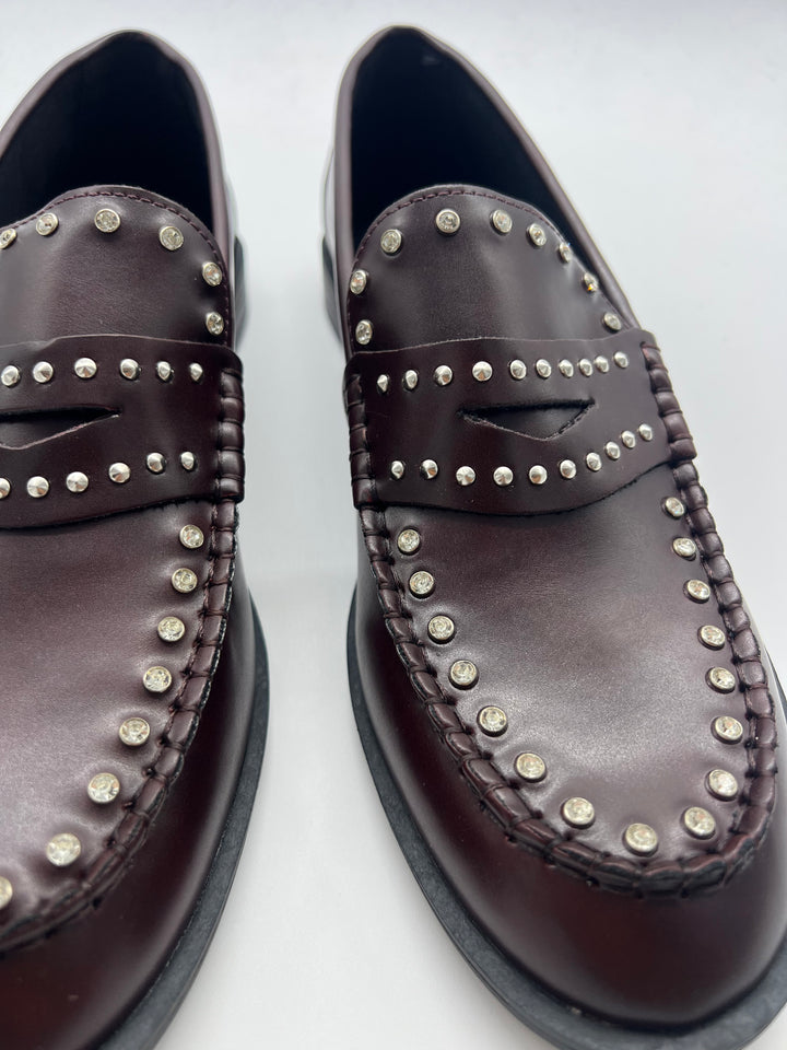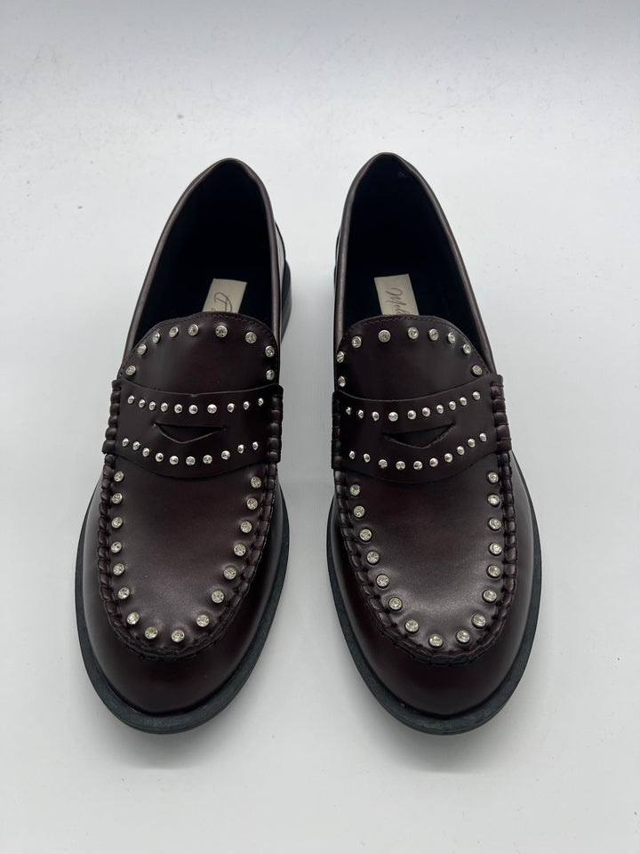 Les mocassins Delfino Melle D allient confort et élégance avec leur design en simili cuir décoré de strass argentés sur le dessus. Leur semelle souple noire assure un port agréable au quotidien, tout en apportant une touche branchée à vos tenues.